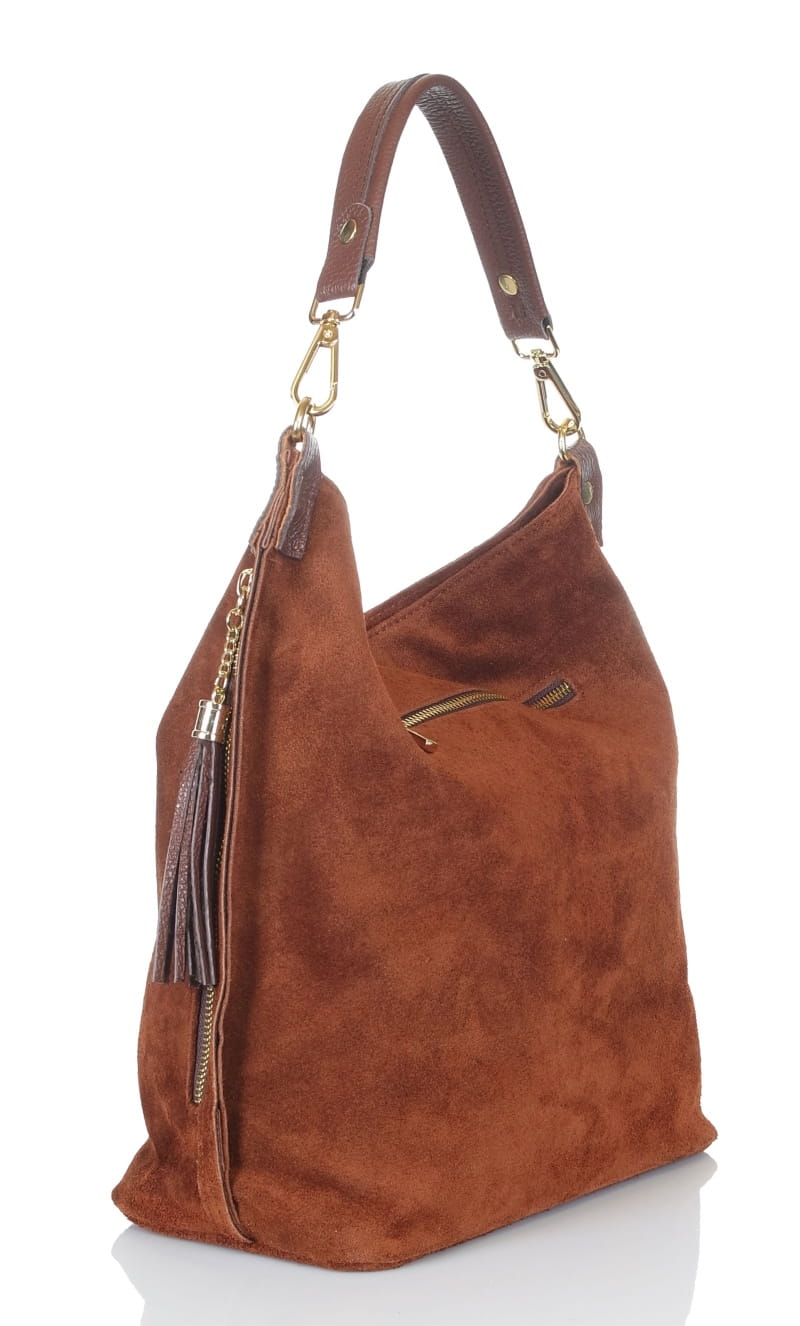 VERA PELLE Włoska brązowa zamszowa torebka ZJ15
