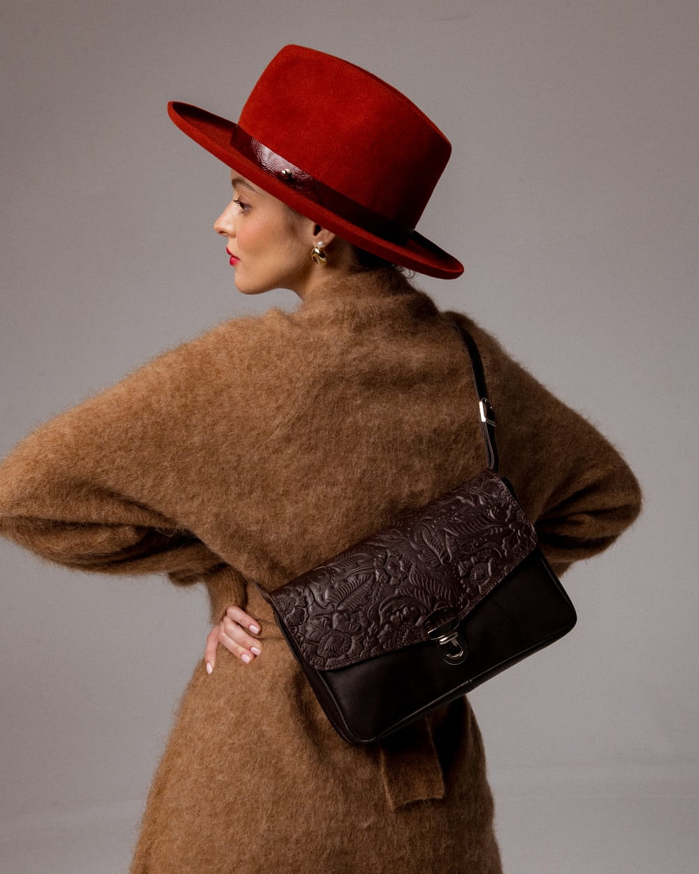 Skórzana brązowa torebka damska na ramię, WALNUT 'CLICK’