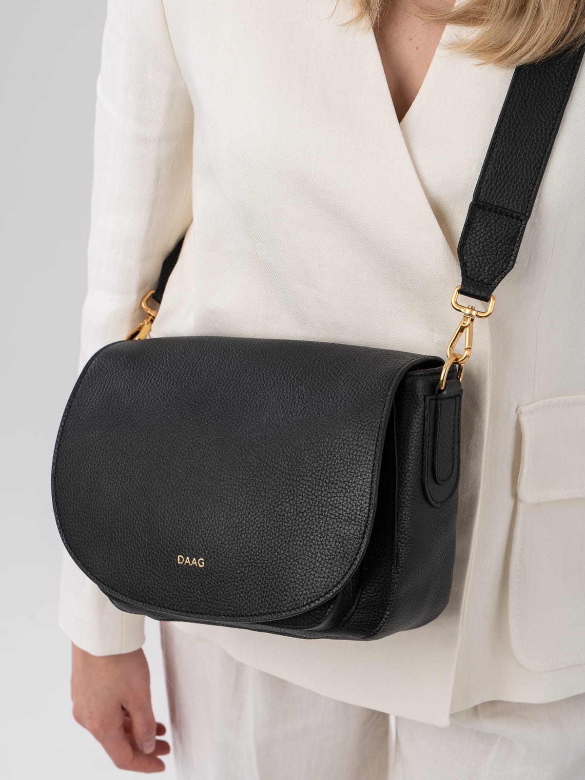 EMMANUELA czarna skórzana torebka damska listonoszka torba na ramię