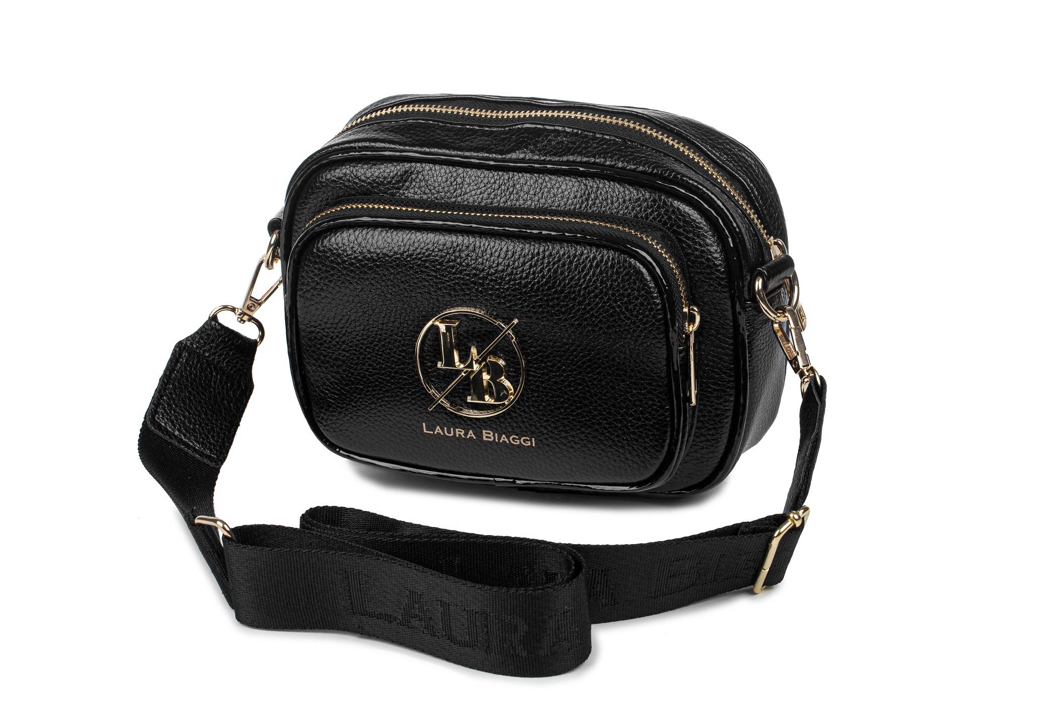 Torebka damska listonoszka Laura Baggi dwie komory czarna pasek logo