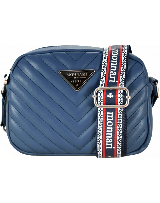 Torebka Monnari Pikowna Listonoszka z logo Chanelka z parcianym paskiem Granatowa