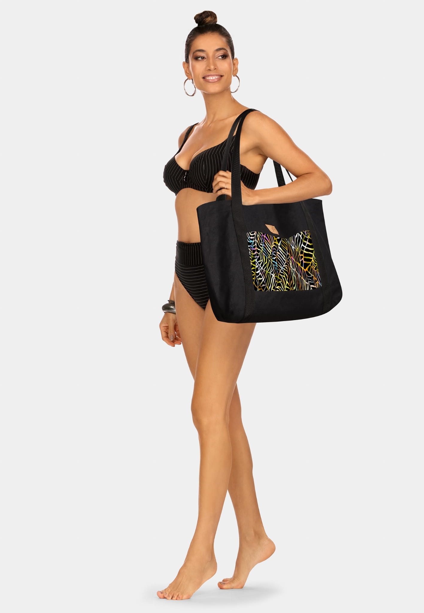 Duża czarna torba plażowa wzór Safari F87/BAG21
