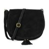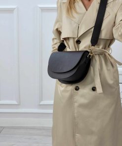 Czarna torebka listonoszka podkówka z klapką Karolina Audycka Pracownia Torebek