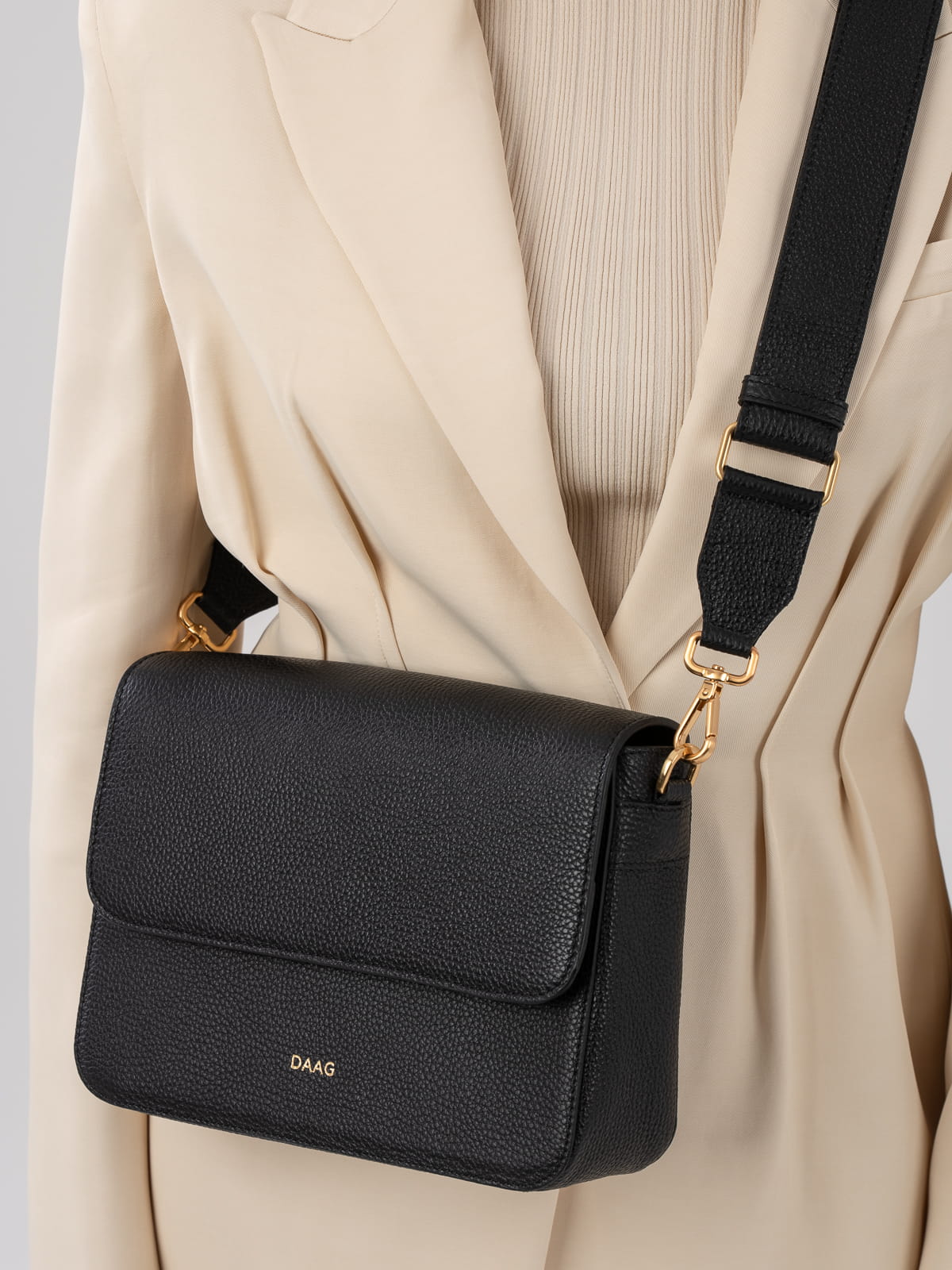 MARIA czarna skórzana torebka damska listonoszka torba na ramię
