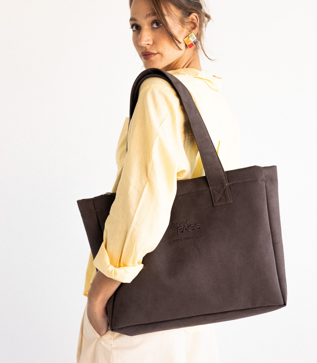 Torebka do pracy Office bag brązowa z kieszenią na laptopa czekoladowa shopperka