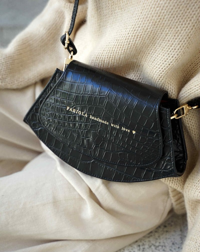 Torebka Skórzana ASTRID S czarny CroCo mat GOLD